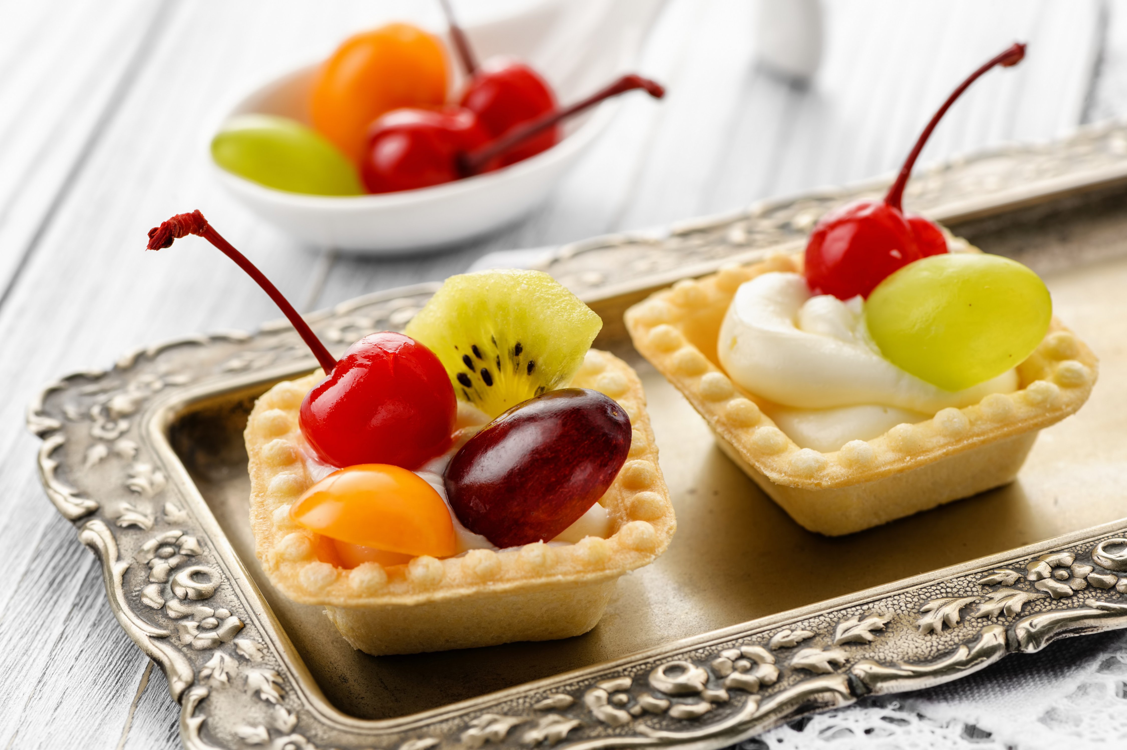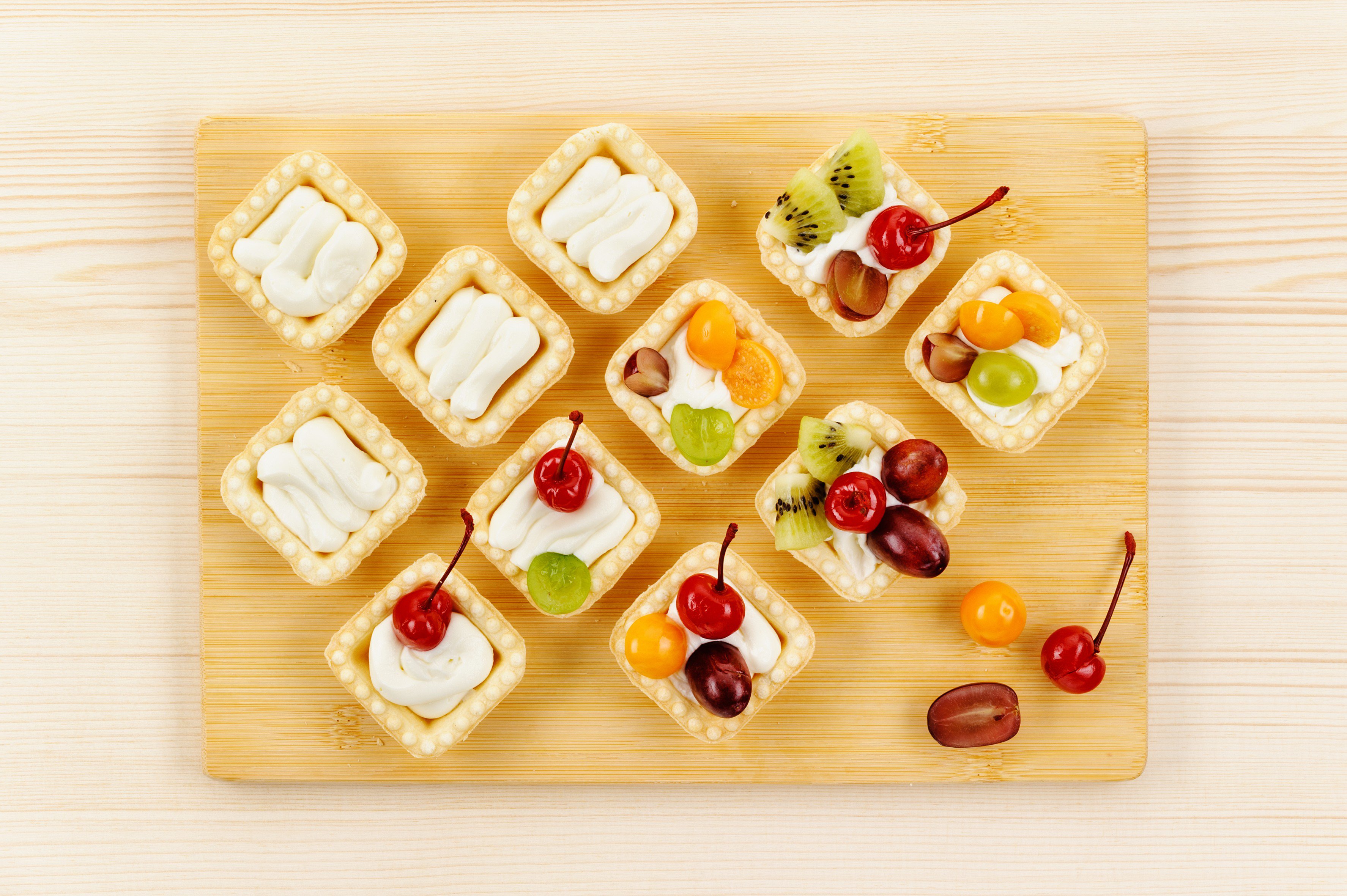 Украсьте тарталетки подготовленными фруктами в различных комбинациях.